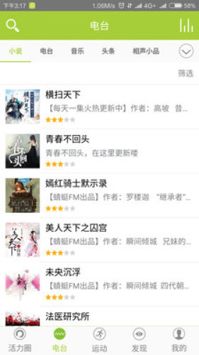 可以一边跑步,一边收听在线电台及网络电台,也可以在线播放或者下载到本地;