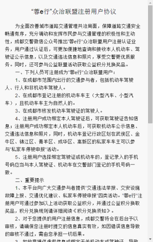 为全面改善城市道路交通管理共治局面,保障道路交通安全畅通有序,充分调动和发挥市民参与交通管理的积极性和主动性,成都交警微信公众号推出“蓉e行”众治联盟,