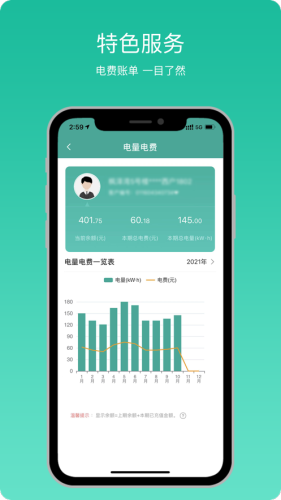 2、电量电费:展示近1年的用电总量及明细,以便用户掌握用电情况。