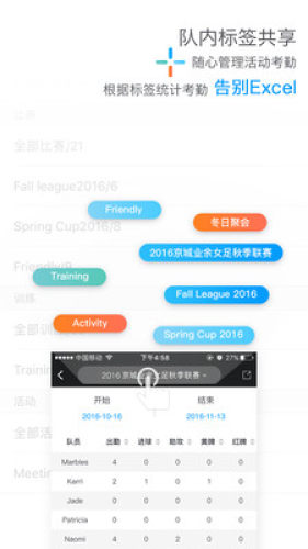 M:“板凳可以根据比赛/训练/活动自定义标签,根据标签统计考勤。”
