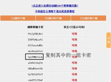 2、进入获取卡密页面,复制其中的一组卡密(手机用户,长按卡密3秒,可弹出复制选项框)
