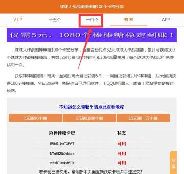 答:您可以将之理解为密钥、钥匙,有了卡密才能提交代点,本卡密与球球大作战的兑换码无关。