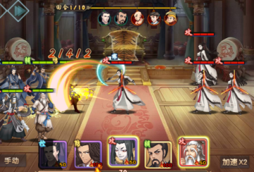 游戏内侠客拥有3个技能,其中1个主动技能,2个被动技能;主角拥有9个技能,其中3个为主动技能,6个为被动技能,但所有技能不能同时上阵,玩家可以根据阵容自行选择。主动技能施放需消耗一定数值的怒气,被动技能不消耗怒气,不同技能施放所消耗怒气数值不同。上阵侠客怒气槽共用,玩家可通过指尖点击选择施放主动技能侠客,也可通过选择【自动】战斗,游戏自动选择施放主动技能侠客。