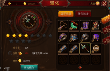 但是,强化等级越高,往上强化的失败率越高(失败只会扣除强化所需的金币费用,不会有其它损失)。因此我们可以选择使用元宝来保证百分百强化成功。