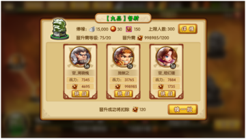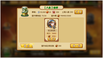当名望值与主公等级到达指定条件后,即可进行晋升挑战,若战胜对手,即可晋升至更高一级的官品。