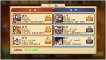 官品等级越高,主公就能拥有更多的官权,执行不同的官权可获得不同的奖励,还可以帮助或是陷害其他玩家噢~