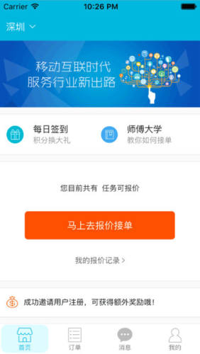 接单易app是为家居服务师傅制作的一款报价接单软件,使用该软件,入驻的师傅可以手机报价并接单干活赚钱,觉得不错的家居服务师傅可以下载试试。