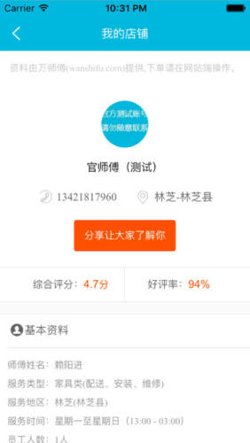 5、新增师傅服务质量分