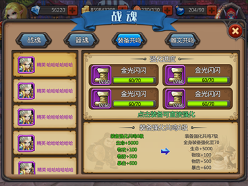开启战魂系统时,则开启装备共鸣系统,l进入装备共鸣界面时,系统需要进行一项判定,判定当前是否有一个或以上的英雄全身穿戴了4件装备,如果是,则进入装备共鸣界面,如果否,则弹出提示:至少一位英雄穿戴4件装备,即可开启装备共鸣!