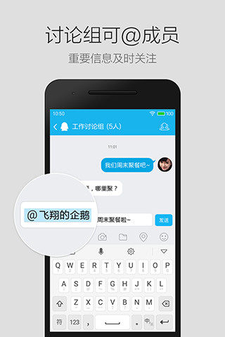- 讨论组可@成员,重要信息及时关注;