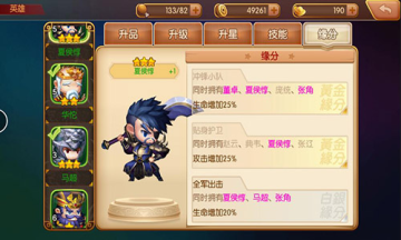 另外,除了以上方法提升英雄属性以外,同时拥有有缘分关系的英雄可获得额外属性加成。