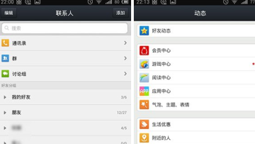 轻聊版在界面布局上相对完整版最大的改动就是去掉了“动态”一栏。此前完整版中的好友动态、会员中心、游戏中心、阅读中心、应用中心、生活优惠、腾讯新闻等栏目被统统拿掉,只在设置界面中保留了“附近的人”这一功能,由此可见虽然推出了精简的轻聊版,但是腾讯通过手机QQ拓展用户群的本意不会改变。