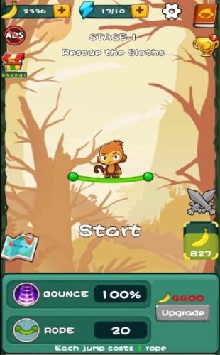3、画出弹力绳子,让猴子能够跳跃到更高的地方去,获得足够多的香蕉来过关。