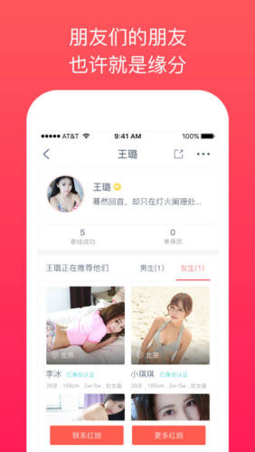 人人红娘ios版让熟人帮助你解决单身问题,分享你身边的单身好友,传递好友动态,为朋友建立二度人脉关系,尽快遇见命中注定的TA。