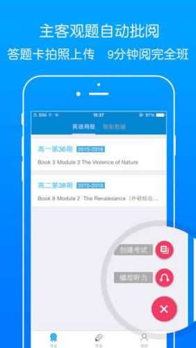 专为广大英语教师用户设计,手机俯拍答题卡,最快每分钟15张。