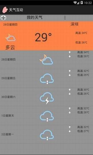 天气互动是一款非常实用的手机天预报类软件,软件功能非常全面,用户可以通过添加8地区,查看各地的天气情况,能够轻松查看最近15天的情况,操作非常简单,是你的必备软件哦,赶紧来下载吧!