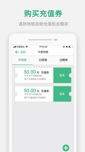 购买充值券:用户可以为交通卡或旅游卡购买充值券,购买成功后需要到地铁站的自助充值机进行圈存。