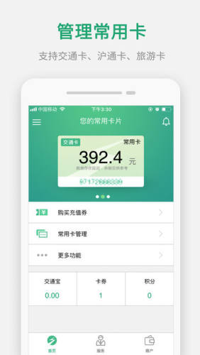 您的常用卡:可绑定您的常用卡片(支持交通卡、ETC沪通卡、旅游卡),方便您的管理。