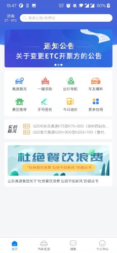 整合山东省的高速实时路况、高速服务信息、路况导航、路费查询、路况报料、ETC查询、新闻资讯等功能,