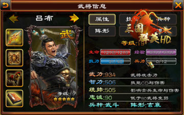 吕布是必须人手一个的标配武将!吕布实力爆表,是唯一一个能回蓝的武将,一招鬼哭神嚎,伤害极高,还能清兵,主力阵容必不可少,可以一直培养的武将,后期培养的好能一打三,一打五,甚至更多。