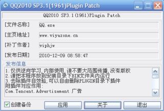 威雅QQ2010(1961)组件去校验补丁 可以去除插件自效验