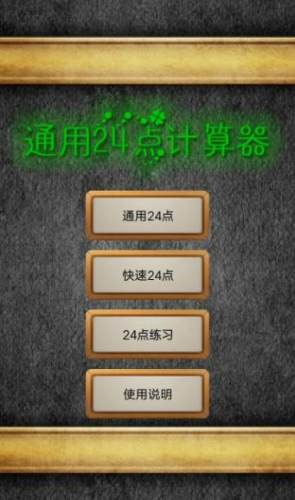 任意抽取4张牌(称为牌组),用加、减、乘、除(可加括号,高级玩家也可用乘方开方运算)把牌面上的数算成24。