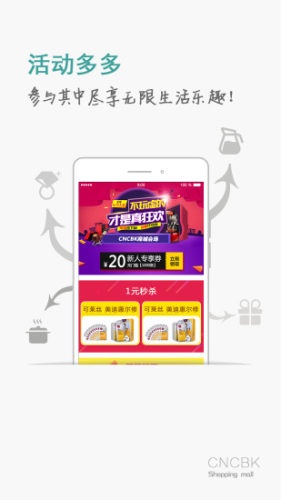 CNCBK商城最新app是由云联意打造的一款手机购物应用,真正实现线上线下交易的电商综合服务平台。具有查看附近联盟商家信息、商品搜索/浏览、购买/在线支付等多种功能,有需要用户赶快来下载吧!