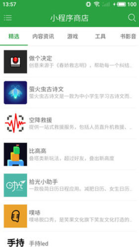 小程序商店app精选小程序推荐,在这里你可以找到许许多多好玩有趣的小程序,无须真正去下载app即可体验app的快感!轻松发现小程序,可以将你发现的好用的小程序分享给大家来体验!