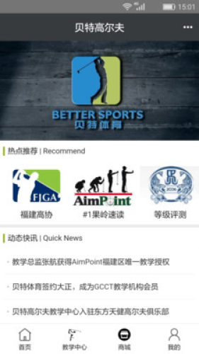 贝特体育(Better Sports) 成立于2016年,是一家以高尔夫教学、体育文化传播为主体业务的专业服务机构。教学团队由中高协职业球员和职业教练员组成,知名外籍教练马丁·罗伯特(Martyn Roberts)出任荣誉院长,团队平均受训、参赛、教学经验都在十年以上。 学院引进了包括TrackMan弹道雷达、Boditrak力板分析、K-vest 3D运动监测、SamPutt Lab推杆实验室、高速视频分析、Blast、GASP等高端的教学系统,为学员提供专业的测试和评估,量身定制教学内容和训练方案。 贝特高尔夫教学中心将为高尔夫爱好者提供高品质教学,以培养精英青少年、职业球员、教练员为使命,致力推动高尔夫运动发展。