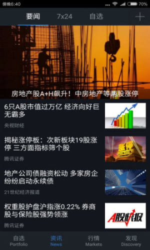 1、7*24小时全球财经资讯、市场要闻实时推送;