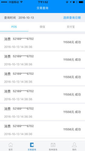 当日交易查询,支持pos机、微信、支付宝等交易动态管理