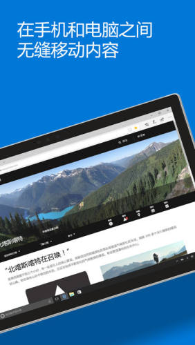在 PC 上继续工作:通过在移动设备和 PC(需要 Windows 10 Fall Creator 更新)之间无缝移动内容,您可以去任何地方并从上次中断的位置继续浏览。