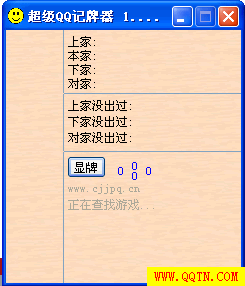 只要你打开了超级QQ记牌器,程序会自动判断是否有对应的QQ游戏在运行,并会自动加载相对应的模块。 进入QQ游戏前或者是游戏进行中打开记牌器,超级QQ记牌器都能自动识别,并在游戏开始后自动进行记牌(如果是游戏进行中开记牌器,则在新一轮游戏开始后自动进行记牌)。