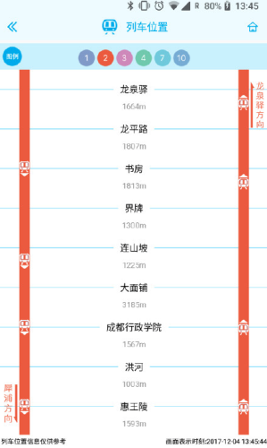 此APP提供的实时位置数据来源于列车运行的实迹图,并非计划图。海峡交通圈之前的作品“畅迪地铁助手”则是根据计划图来计算列车的实时位置及预计到达的时间。由于地铁的准点率相比公交车来说高了不少,在大部分情况下都可以近似利用计划图模拟实迹图,故之前我们的“畅迪地铁助手”也有95%以上的准确率。纵观中国大陆,大部分地铁官方APP都只提供各站首末班时间查询,并未提供中间时段的列车实时位置或预计到达时间资讯。港铁则有一个Nexttrain APP,提供部分线路的下班列车到达时间。成都地铁或许是全国首个在官方APP里内置列车实时位置查询的地铁系统。至于这种功能是否真的有必要,海峡君认为是有的。目前全国能维持全天随时随地都能坐到地铁(即平峰期地铁列车间隔也维持3分钟左右)的线路极少,相信不少人有赶时间搭地铁,跑到站台上列车正好关门的经历,若是能够提前知道列车的到站时间,还是能方便不少乘客的。