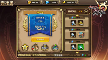 竞技场是展示玩家实力的舞台。目前游戏中竞技场分进阶战和排名战2个阶段。玩家需要从1阶打到6阶,才能进入排名战,所以大家一定要努力提升实力哟,实力不够是没法进阶的!进阶之后玩家将迎来更艰巨的挑战!