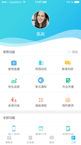 4、便捷工作界面包含了:考勤、成绩、动态、通知等辅助功能,方便教师处理自己的事务;