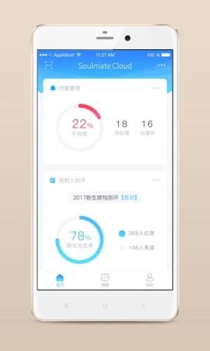5、校级管理为学校提供用户管理、心理测评、分析及危机预警、心理咨询,档案管理等一站式心灵管理解决方案。