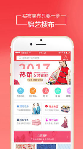 锦艺搜布是一个服装面辅料B2B撮合交易平台,融合了硅谷人工智能AI图像识别技术,拍照找布匹配度达98%以上,融合模特试穿功能、现货交易、供需发布等功能。