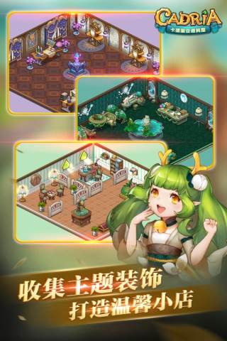 《卡德里亚道具屋》是一款模拟经营类手机游戏,游戏画面清新脱俗,内容丰富多彩。游戏以店铺、城镇建设与工匠、英雄的养成为主。通过不断研发新的图纸,售卖各类道具,逐渐扩大店铺的经营范围和规模,帮助故乡小镇进行重建。 在充满魔法与幻想的卡德里亚世界,身负天命的勇士们创造着属于自己的传说。但是,拯救世界的任务实在太危险啦,还是让别人去完成吧!