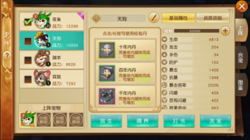 3)对高资质的宠物进行打书,增加被动技能数量,把低级被动替换为高级被动,进一步提升宠物战力