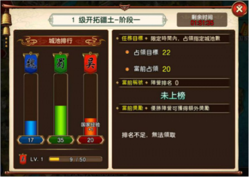 攻守城池:各国家需占领系统所指定的城池。