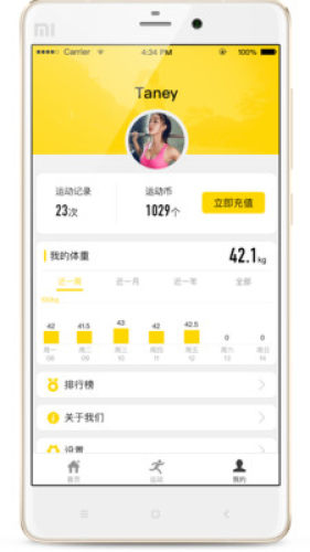 一款全天24小时营业的健身房;我们让您不用在乎健身房的营业时间;我们还记录了您的体重和每次的运动数据,让您能随时随地看到自己的情况;同时设立了排行榜,可以与朋友们进行比拼;我们还有运动小知识和器材使用等说明。
