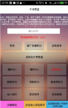 千寻赞皇2018最新版,本站特别推出的优化版本,也是大家最想要获得的刷qq名片赞工具,能够在大家简单操作之后,获得稳定刷8000名片赞强大功能。