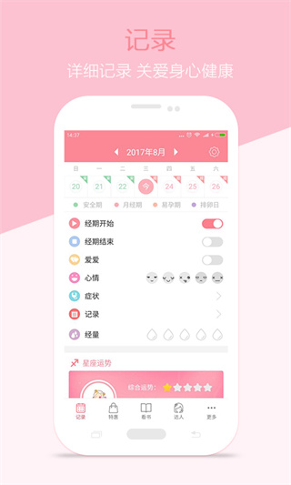 1.女性可进行月经期管理 :在大姨妈来临前的温馨提醒,预测排卵期/安全期,易孕期、排卵日,您都需要。