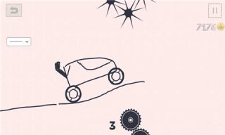 起点处有默认有连个轮子,需要您绘制汽车外形,绘画完成点击开始按钮即可开始游戏。