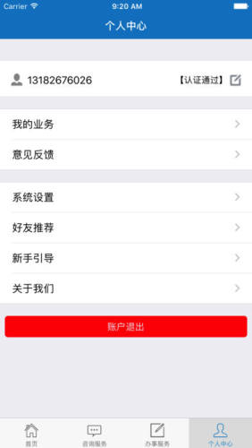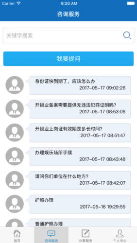 客户端包括办事服务、查询服务、咨询服务、便民服务四大功能类型,