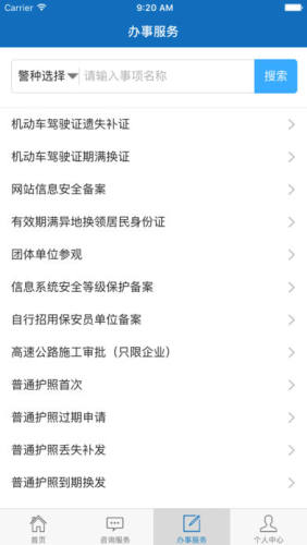 群众可以查看办事指南,预约、申报办理公安业务,查询办事进度、重名、驾驶证、机动车违法等信息,