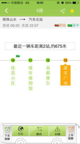 公交车辆即将到站,系统会以响铃或震动方式进行提醒,避免错过车和坐过站的尴尬。