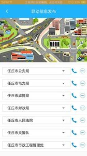 集成任丘各部门电话和即时通讯,融合任丘吧等实现警民互通的APP。