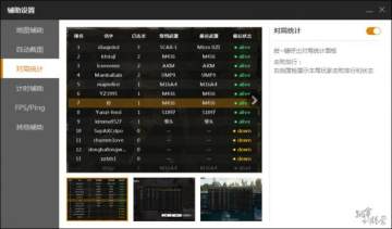 这里是小编认为功能最imba的辅助了,在这里我们可以看到同局其他玩家的名字、杀人数、常用武器、最近武器和是否阵亡等信息,之前的游戏中这里面大部分数据仅能靠玩家看左下角缘分记忆,如果这款功能一直开放,那么相信在以后的游戏中狙击主播会变的更加容易。